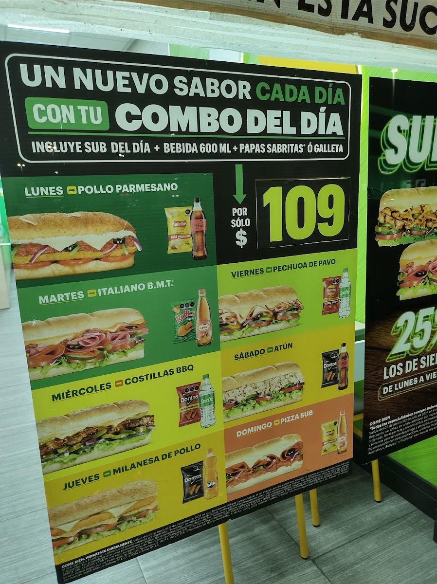 Subway, located in San Nicolás de los Garza, Mexico, offers a diverse menu focused on fresh, flavorful subs that cater to varied tastes. Their Premium Subs such as the Chicken & Bacon Ranch, Pollo Cordon Bleu, and Costilla BBQ deliver rich, savory flavors, all priced reasonably at MX$79. For lighter options, the Subs de Valor like the classic Jamón, BLT Tocino, and Vegetarian Sub provide quality and value at MX$55. Those seeking a complete meal can enjoy combos that pair a sub with fries or a cookie and a soft drink for MX$35, adding convenience and satisfaction.